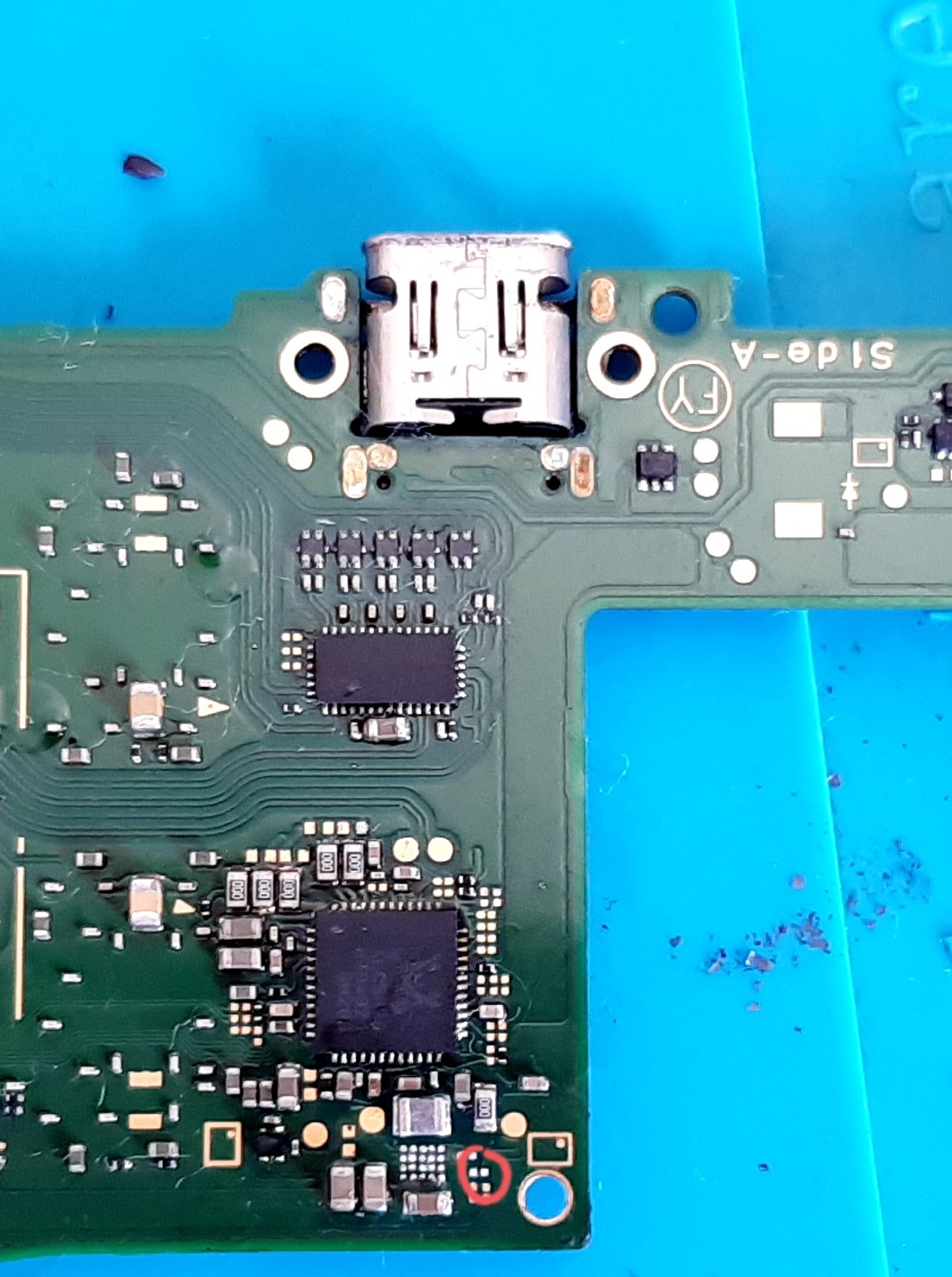 I brown up a resistor on the backside of the PCB while I replace an IC. Please refer to the picture below for the specific location of the resistor.