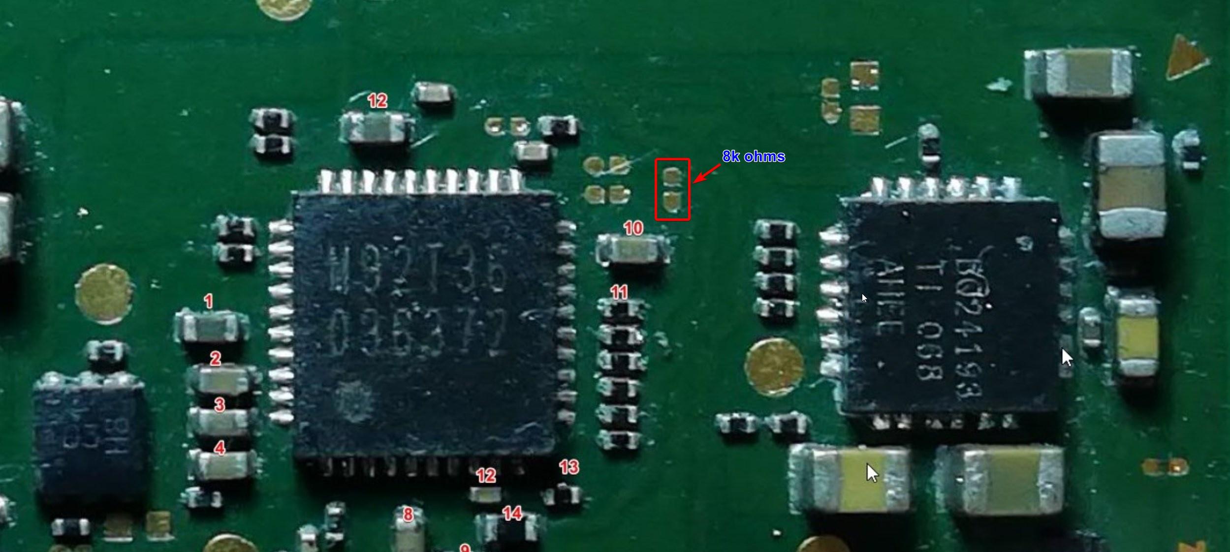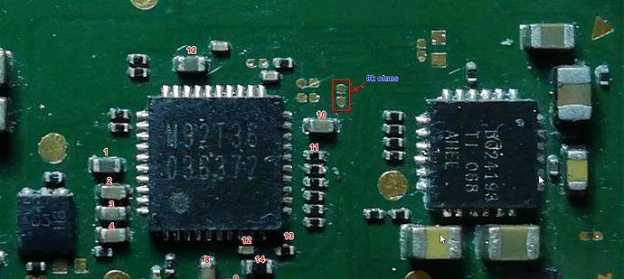 I removed the inductor the BQ IC and the M92 ic as well as that component that was chipped which I replaced and the value wasn’t increasing, I even removed number 10 component just in case it was bad but alas it still won’t go above 1.9k ohms infact with everything of now it’s 1.0*k ohms