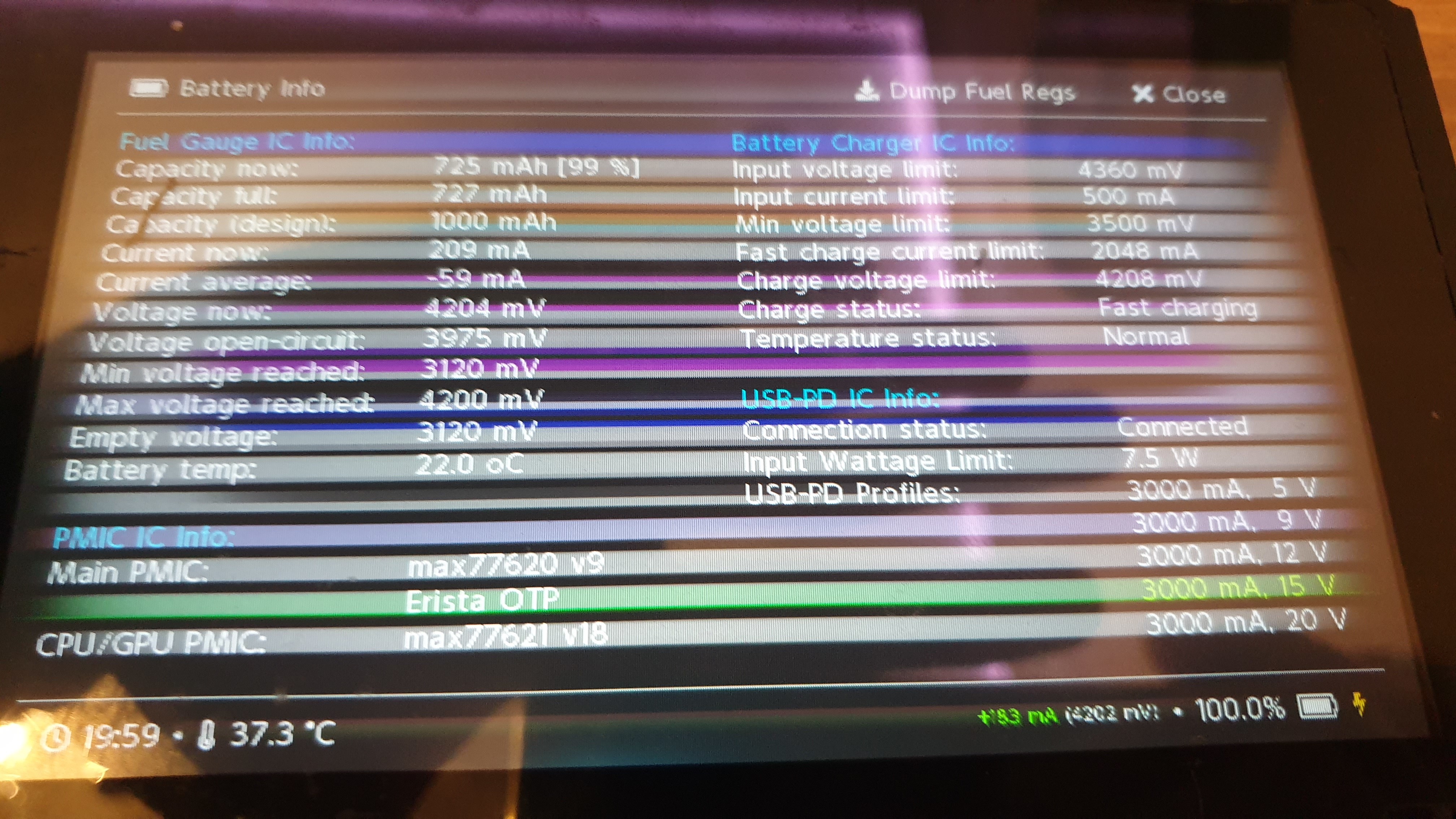 I’m no expert on this end of things, but as you are able to run payloads I would run hekate and see if anything looks out of place when you run tests for various things like the emmc / fuel guage etc.