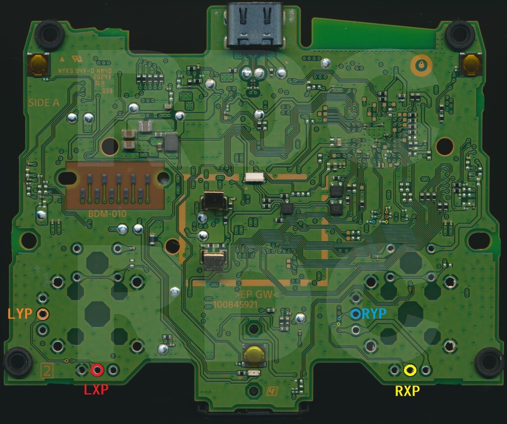 I need to know where the center pad of the lower potentiometer of the left joystick connects to.