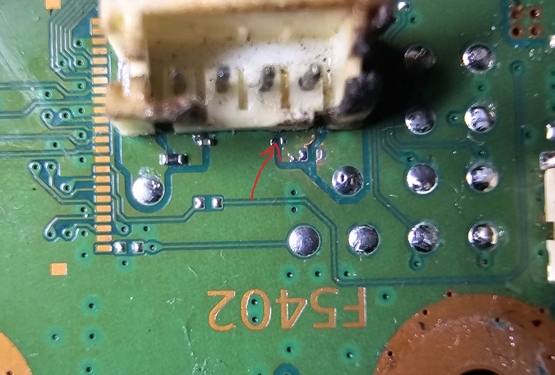 EDM-033 out of a PS5 1200 series disc edition. Looking for the value of the capacitor that goes where indicated in the image, between F5402 and the drive connector. (Cap has already been pulled off to verify failed open.) Can anyone lend a hand?