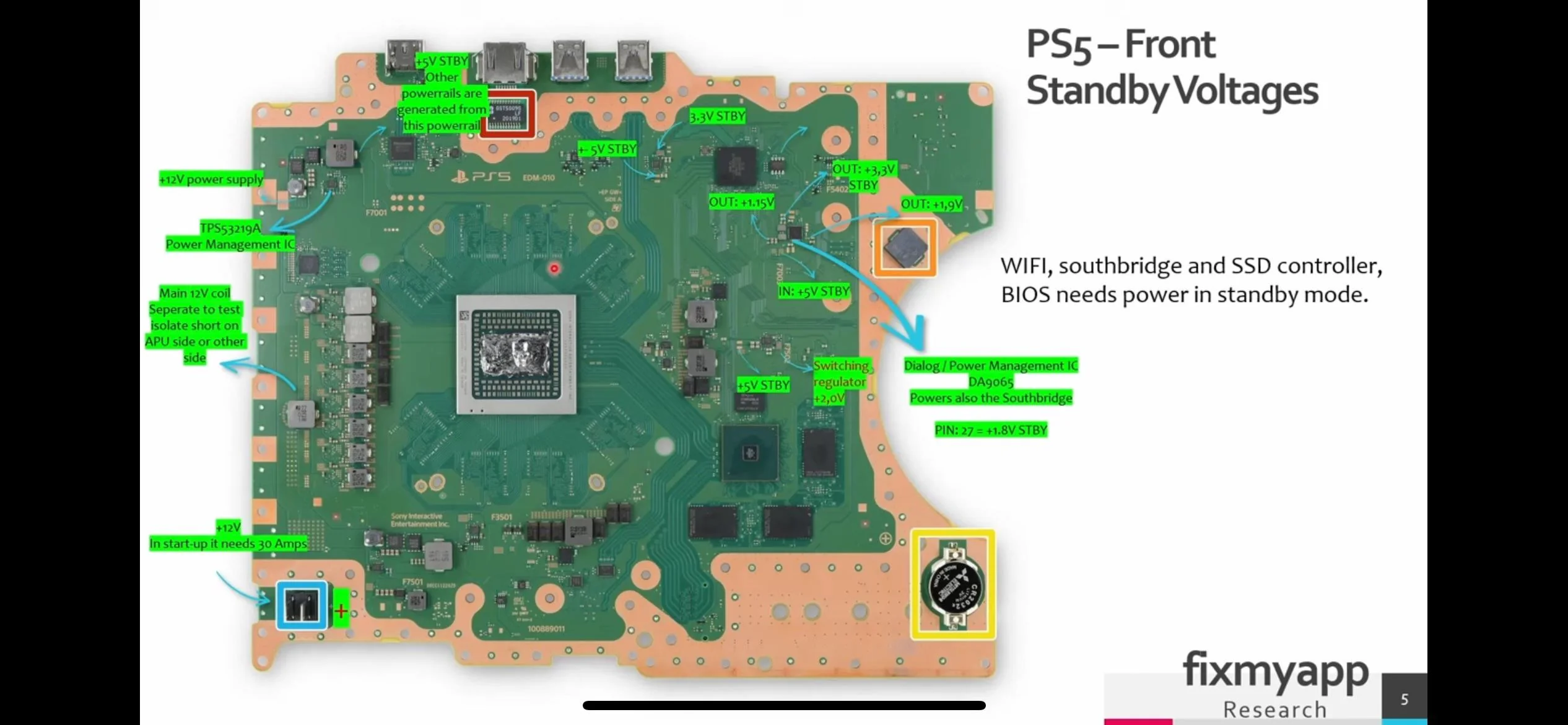 around my dialog ic when standby it is coming 3.3v and 5.1v but after that everything is shorting. i gonna share some schematics how it should be.