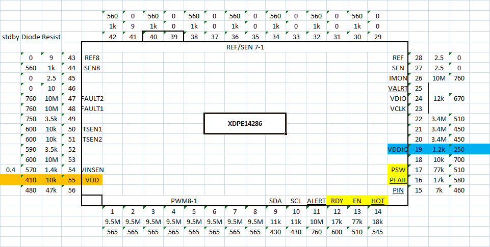 Resistence on XDPE Pin 55 is 2,8k. Maybe XDPE can not be initialised because of BIOS hanging? Or it is the other way round? We will find out ![]()