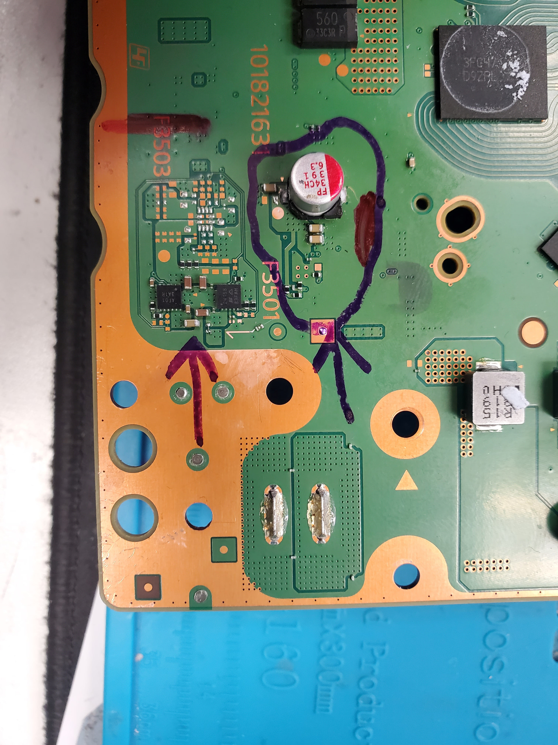 Please post a picture where you find the short and injected 3V.