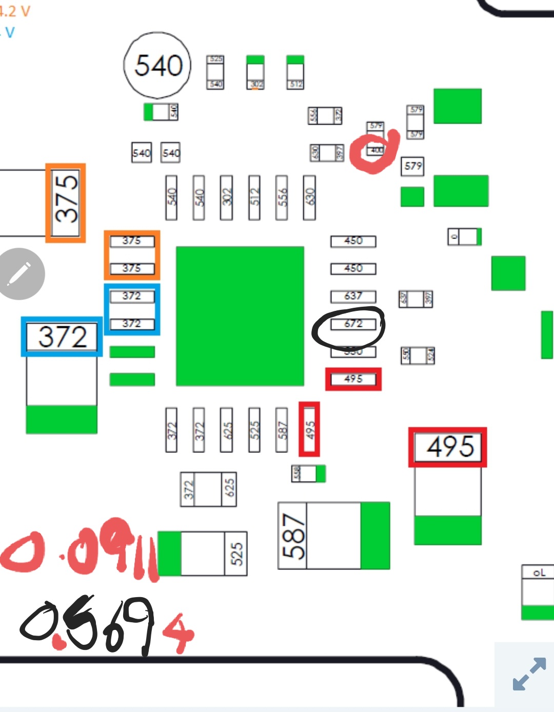 You can either pull BQ off to start with or…I’m sorry to say M9 IC again and see which (if any) resolves the short (which may be putting a secondary fault on 1V8PDR)