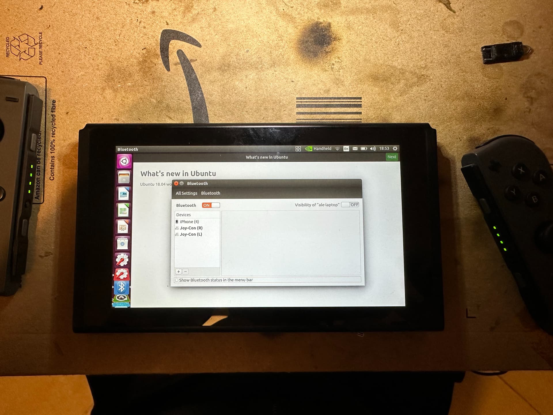 But BT isn’t able to connect neither at shorter range. Then I try again Linux, and suprise, BT can detect everything and also connect to the Joycons at shown in the image.