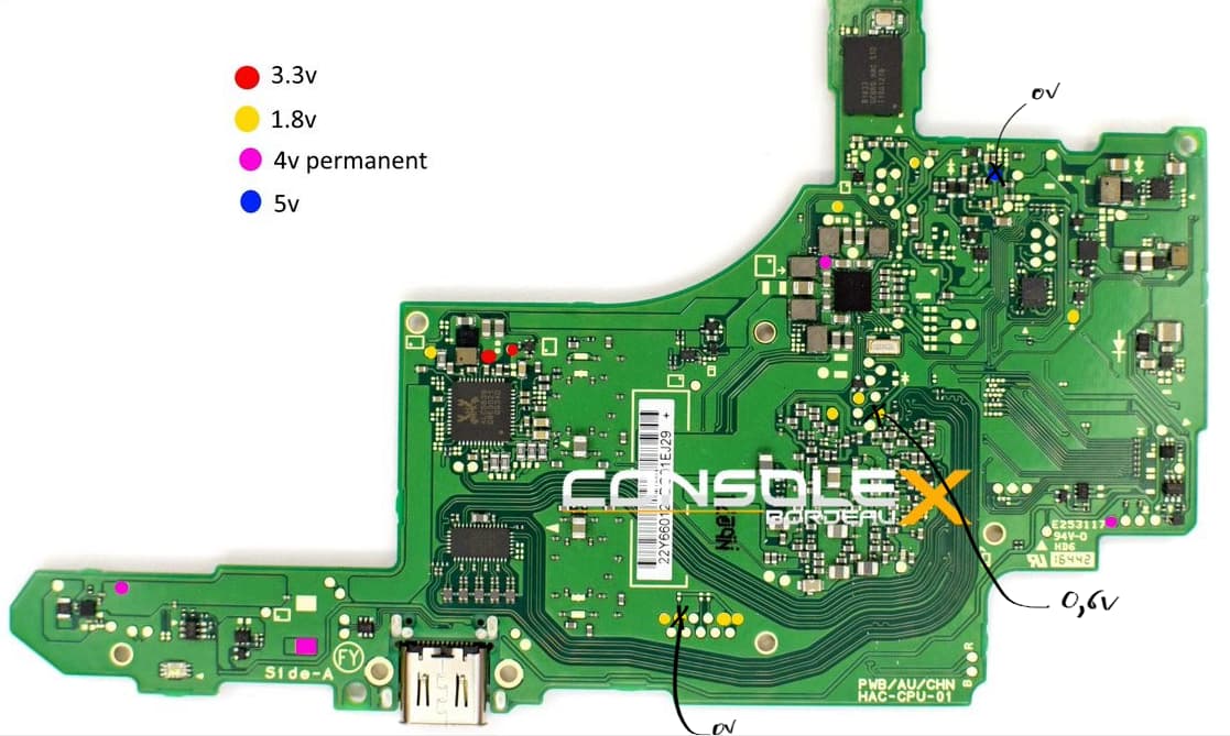 I’m currently troubleshooting a Nintendo Switch motherboard that won’t power on. The issue seems a bit tricky, so here’s a clear summary of what I’ve checked so far :
