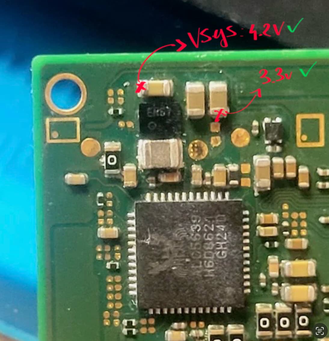 I checked the back side near the audio IC → Both 3.3V and VSYS rails are present.