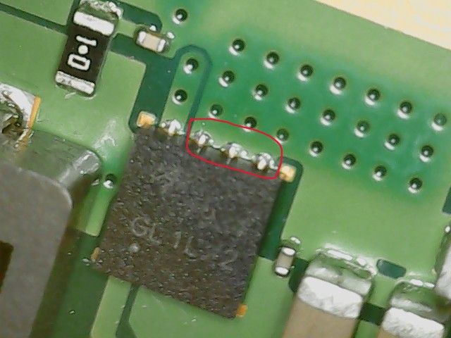 Next to those fuses, there is a chip with three aligned pads that appears to be shorted, but I don’t know what its function is or whether this is normal.