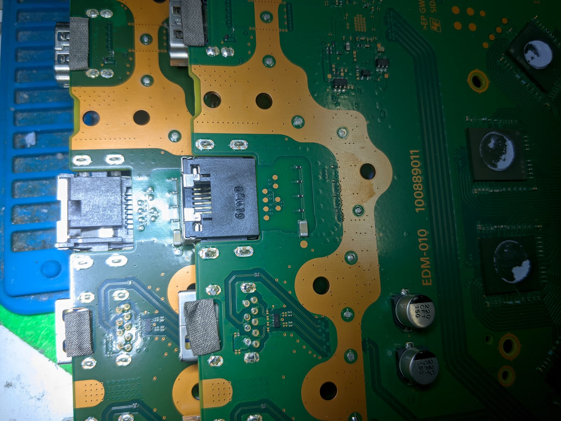 I actually saw original EDM-020/CUH-11xx board uses PS4 type LAN port by default. However from my picture above it’s clear that the black plastic housing is smaller than PS5/new type, especially those board edge holding arms on left and right edge sides as well as bottom pin side.