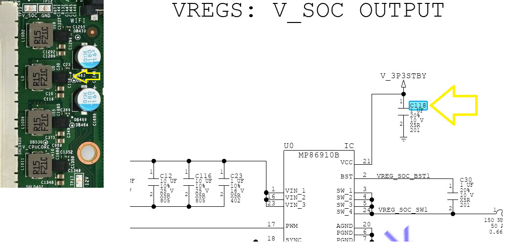 It would actually be the c349 but that was just a pic i was able to grab off a video that showed the best view of the component. I appreciate you pointing me in the right direction. I assume that would.be the 3.3v rail also