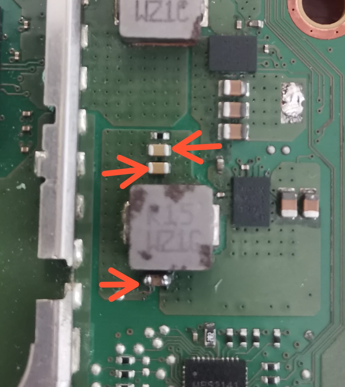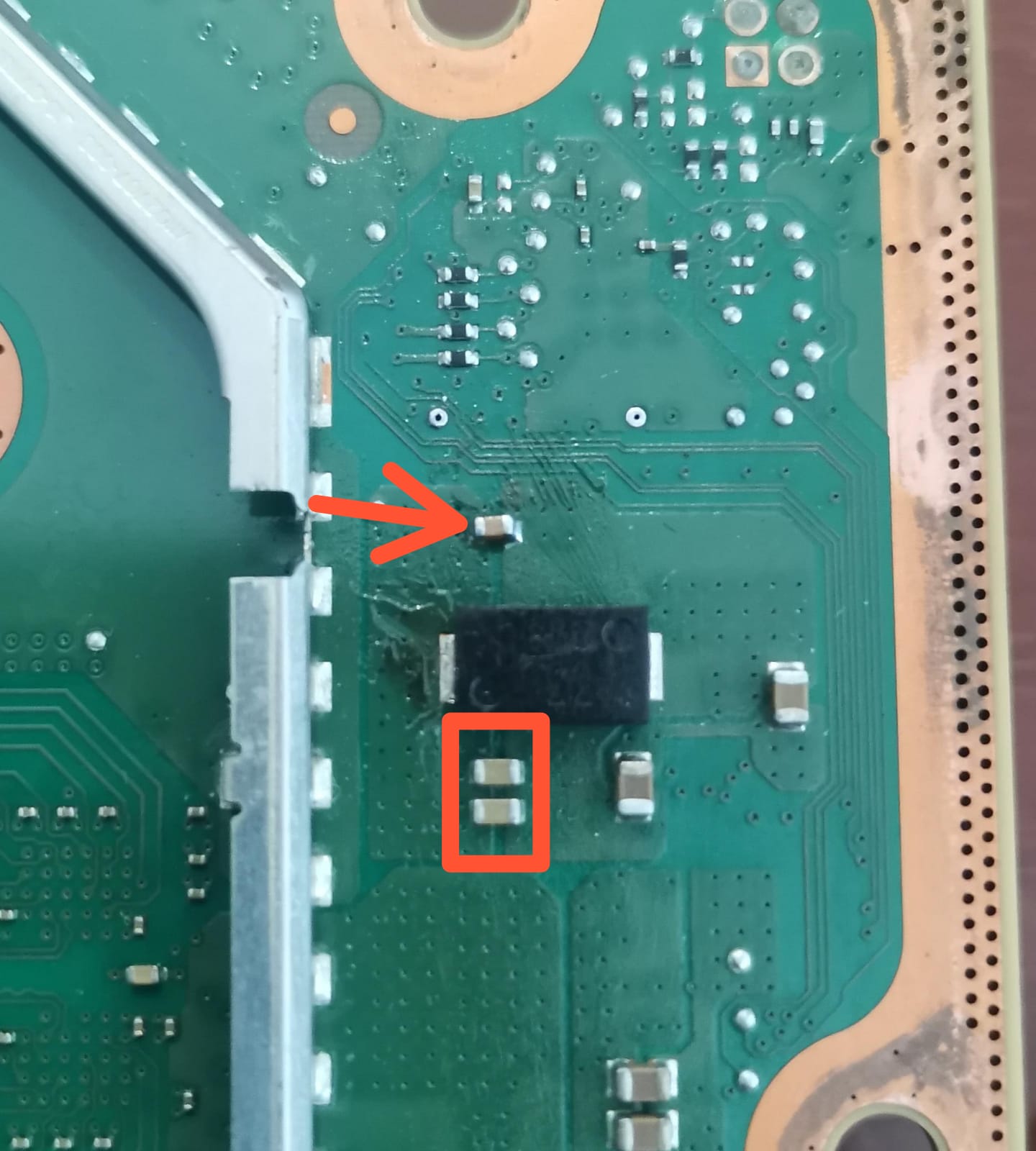 I also tried injecting 1.8V into the MOSFET area to see if anything heats up, but I still can’t find the faulty component. I don’t have a thermal camera.