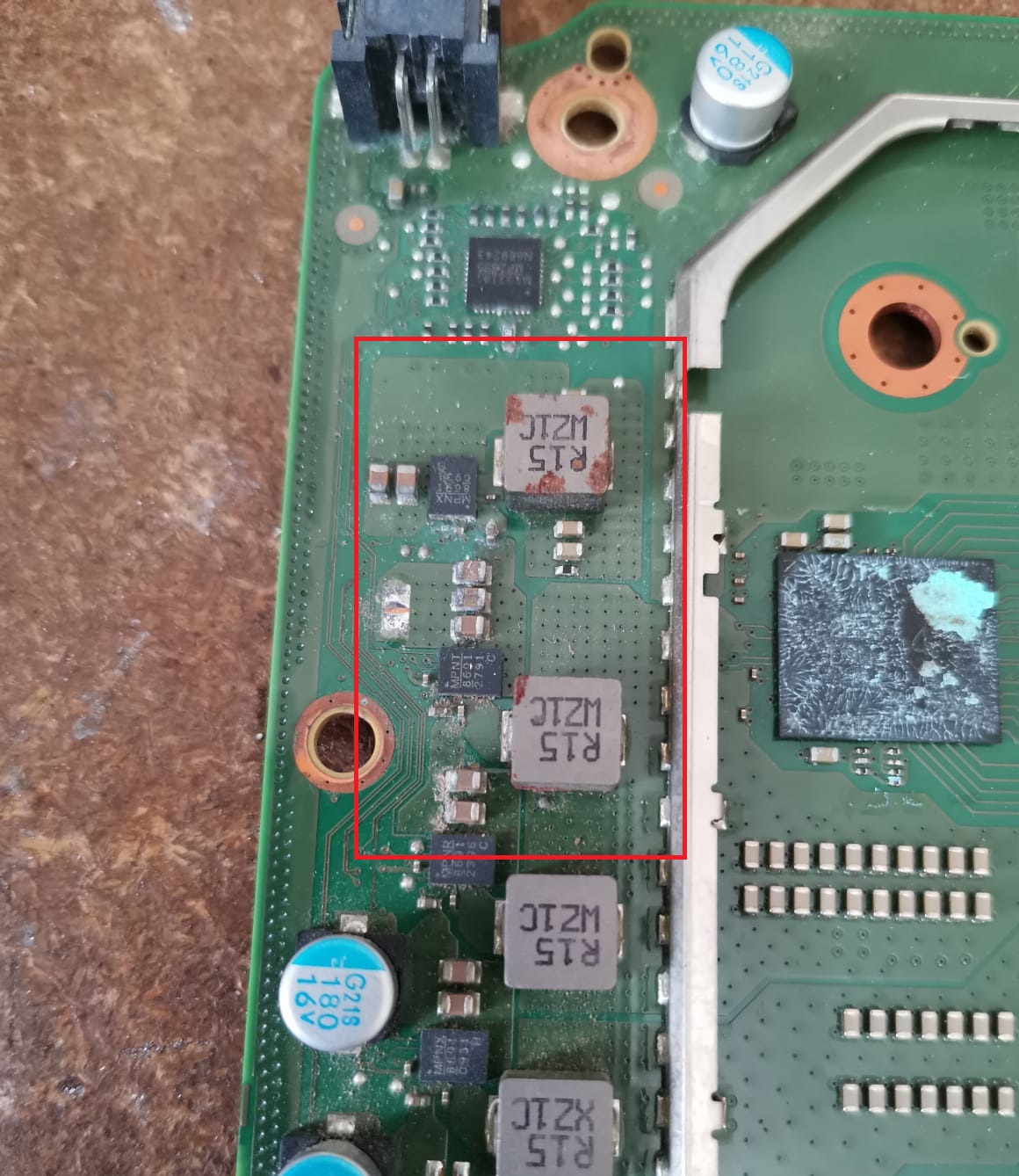 I found signs of corrosion in the area shown in the picture: